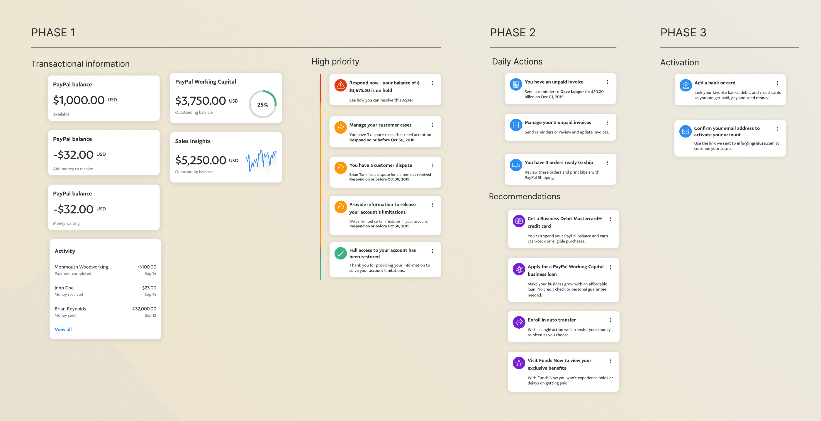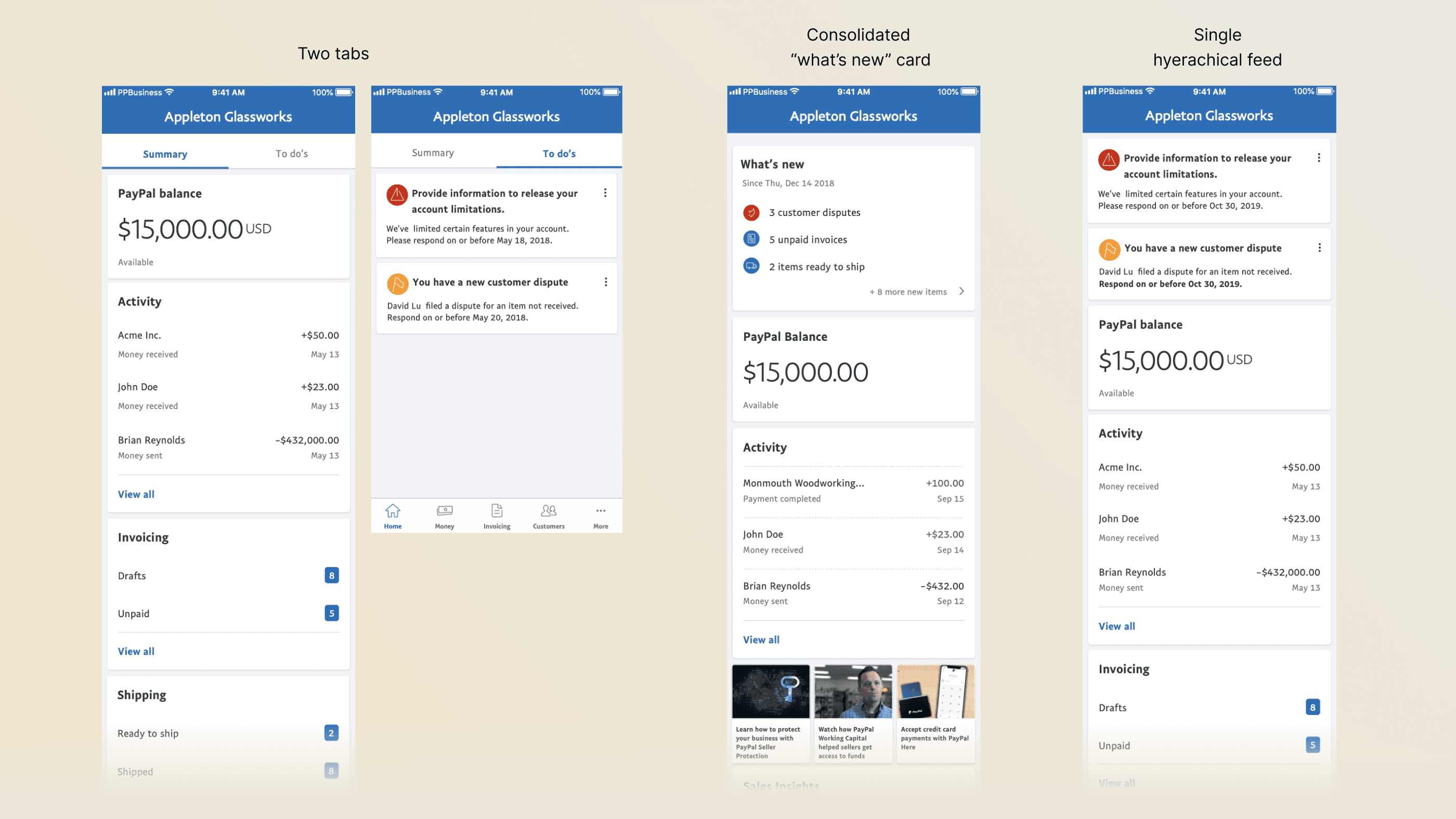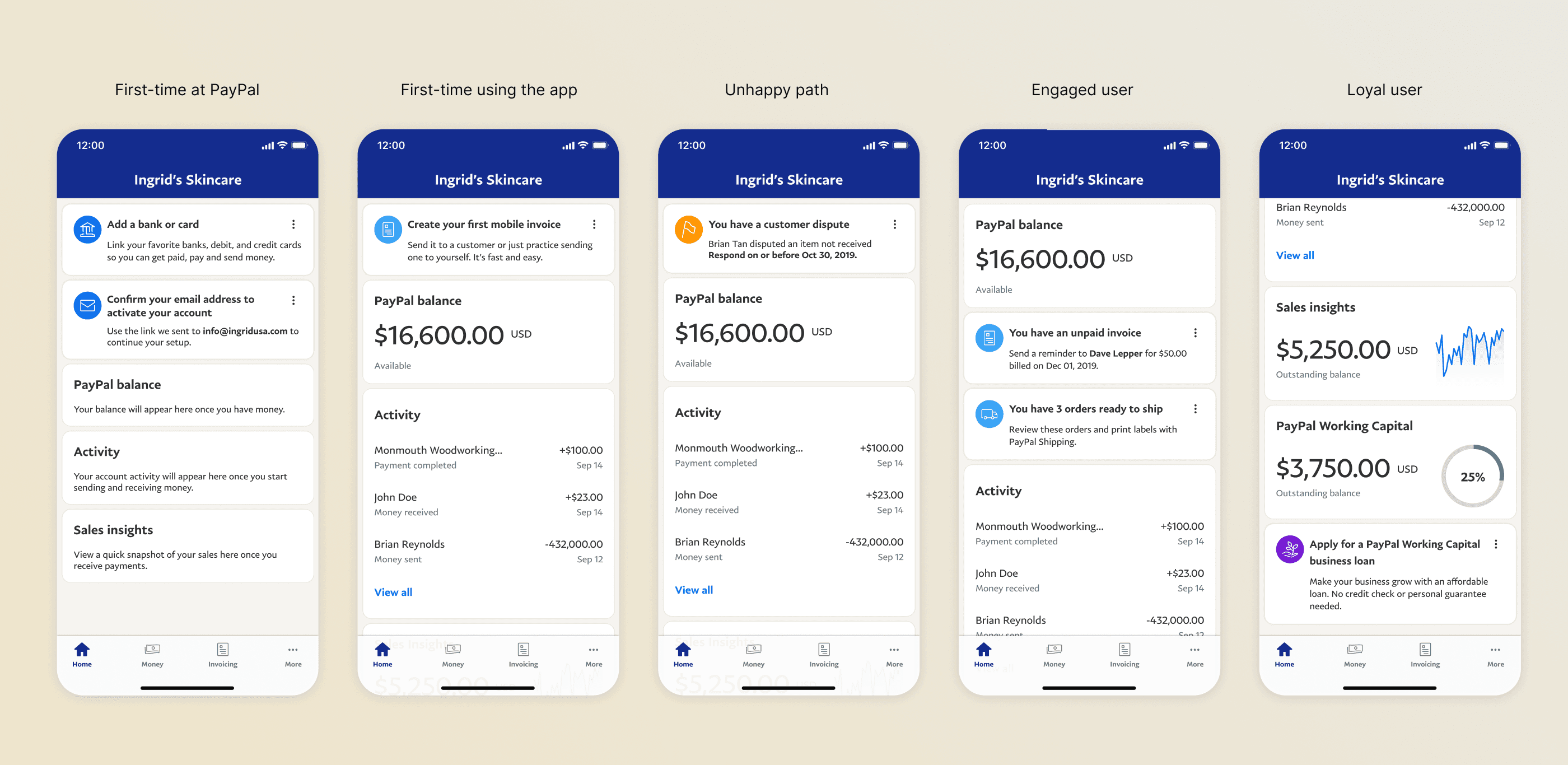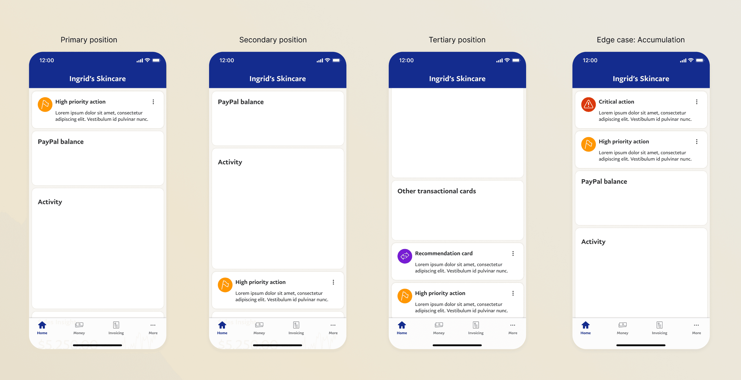 Over time, we built more than just a home screen — we created a dynamic system where features and messaging worked in sync, guiding merchants through every stage of their journey. Whether they were new to PayPal, handling a dispute, or ready to explore more tools, the feed adapted to meet them where they were. What started as a simple list became a smart, evolving experience — one that supported users from their first invoice to their hundredth sale.