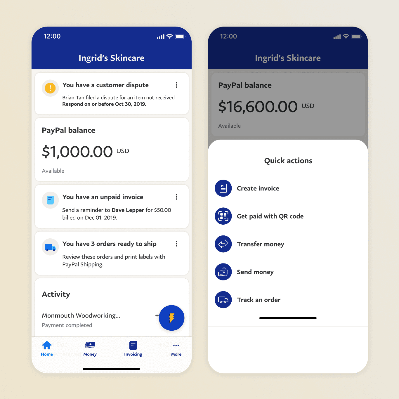 I created a design framework to scale PayPal Business, a native app that empowers 1.2 million small business owners worldwide enabling them to manage their sales operations by sending invoices, monitoring progress, resolving disputes, tracking loans, and reviewing transactions.