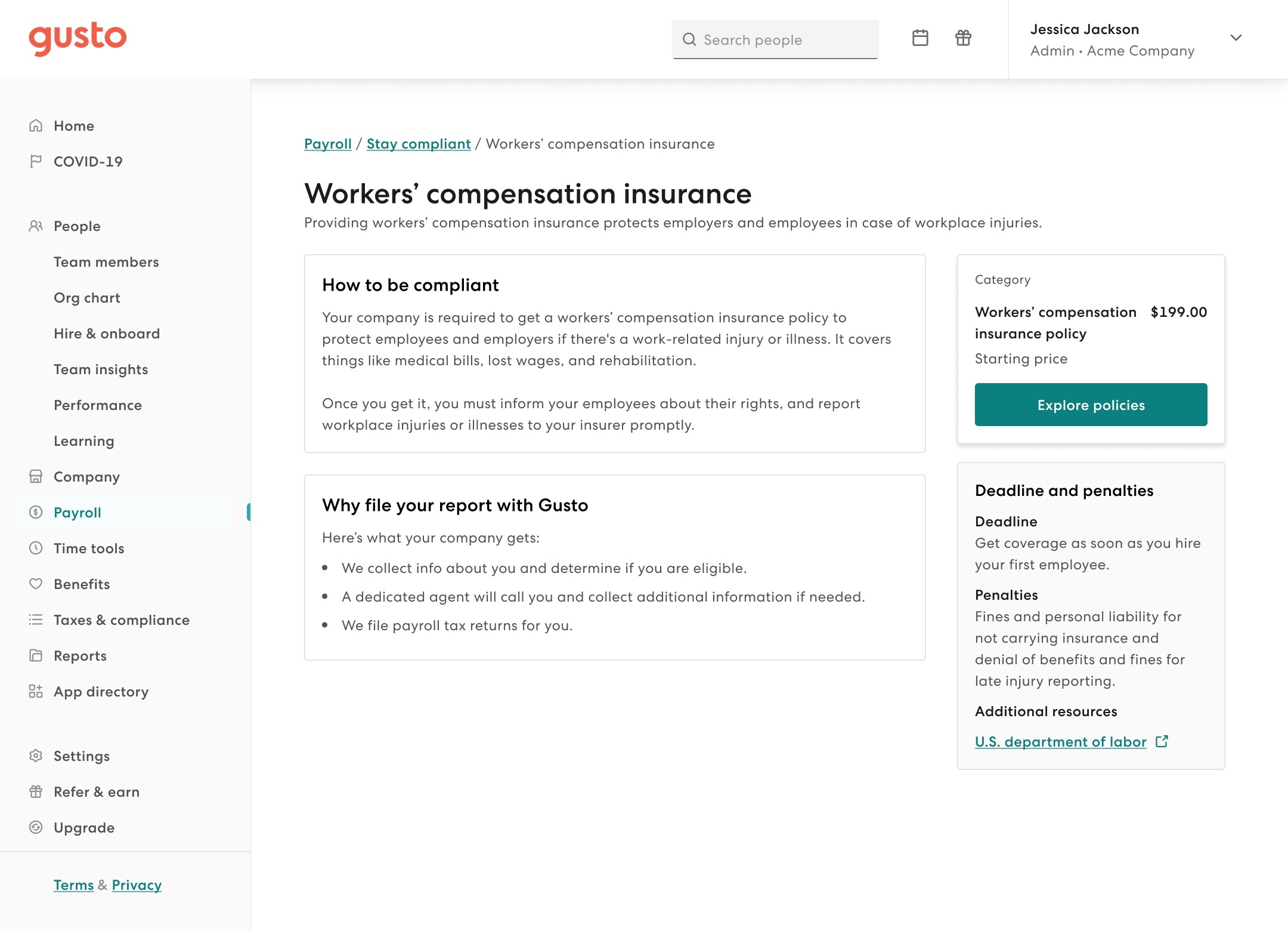 Early explorations focused on organizing information, and making sure we set clear expectations on what customers needed to do, Vs. requirements already handled by Gusto.